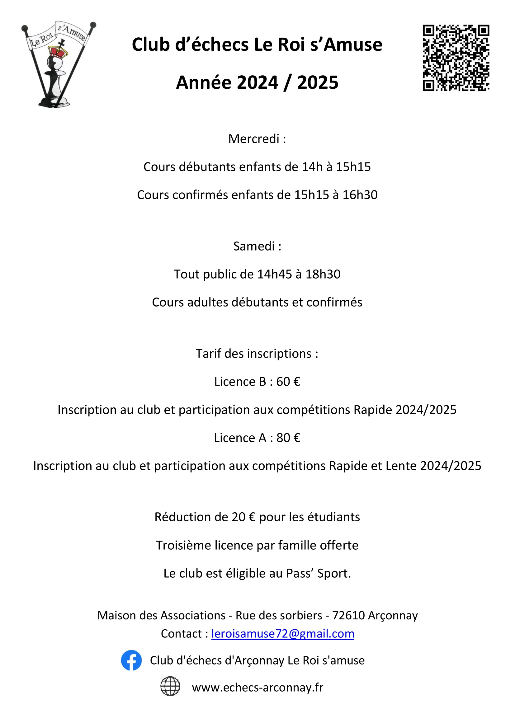 Licence B : 60€ (permet de participer aux tournois en parties rapides, moins d'1h)